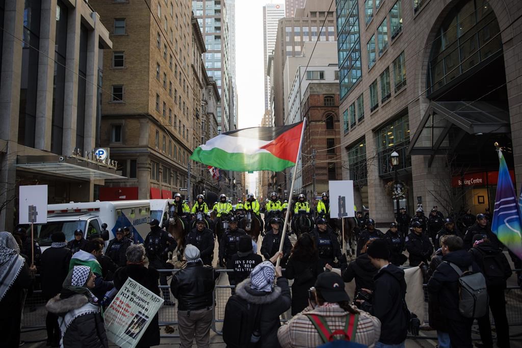 TORONTO — Des groupes propalestiniens allèguent que les policiers de Toronto appliquent les règles de manière sélective lors des manifestations organisées après que sept personnes ont été arrêtées et au moins trois ont été accusées lors d'une manifestation samedi.